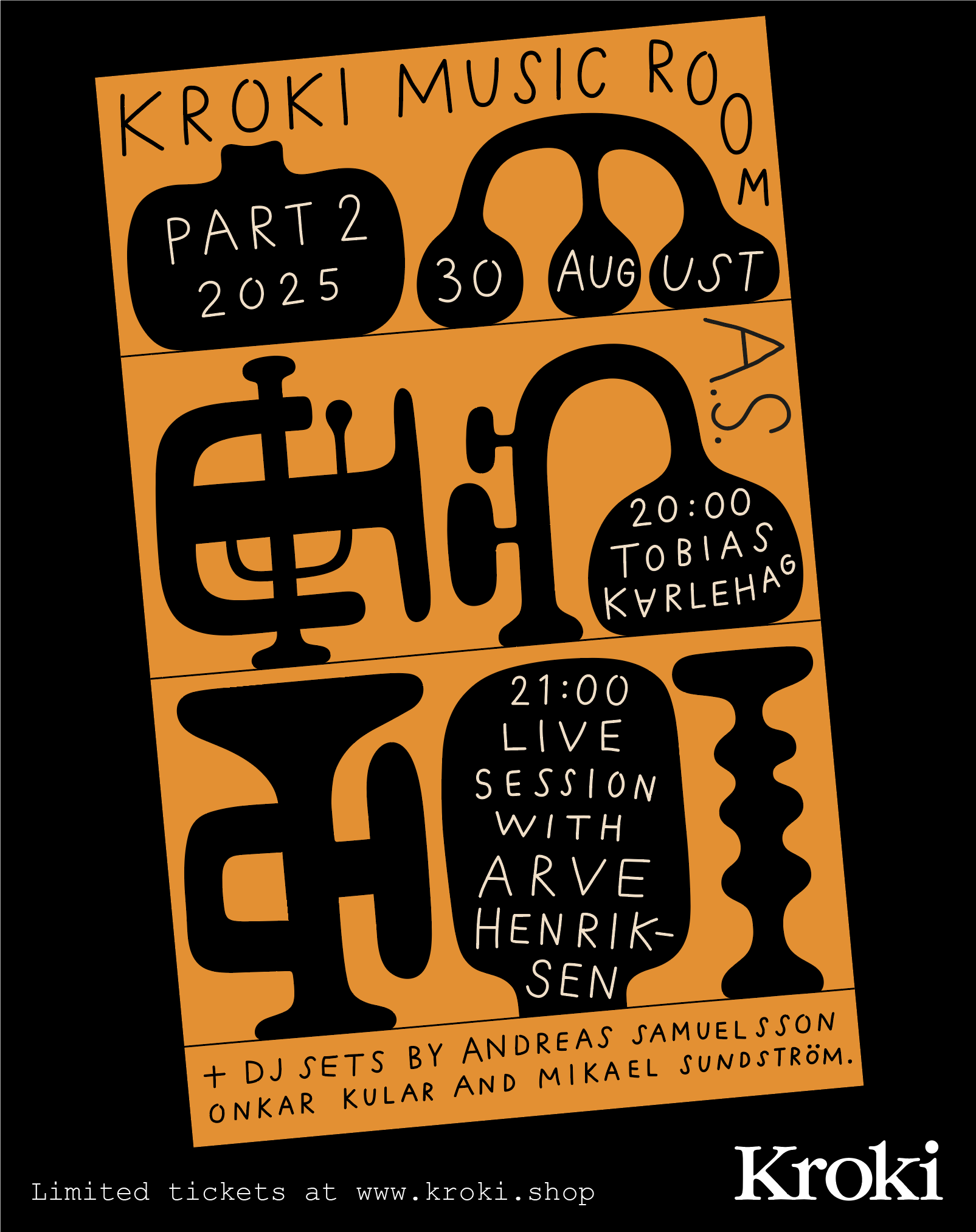 The concert takes place on Saturday, August 30th at Kroki’s studio next to the tram station Sandarna, in Gothenburg/ Sweden.